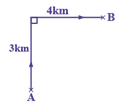 في الشكل التالي تحركت سيارة من النقطة A إلى النقطة B ، ما مقدار إزاحتها بوحدة Km؟